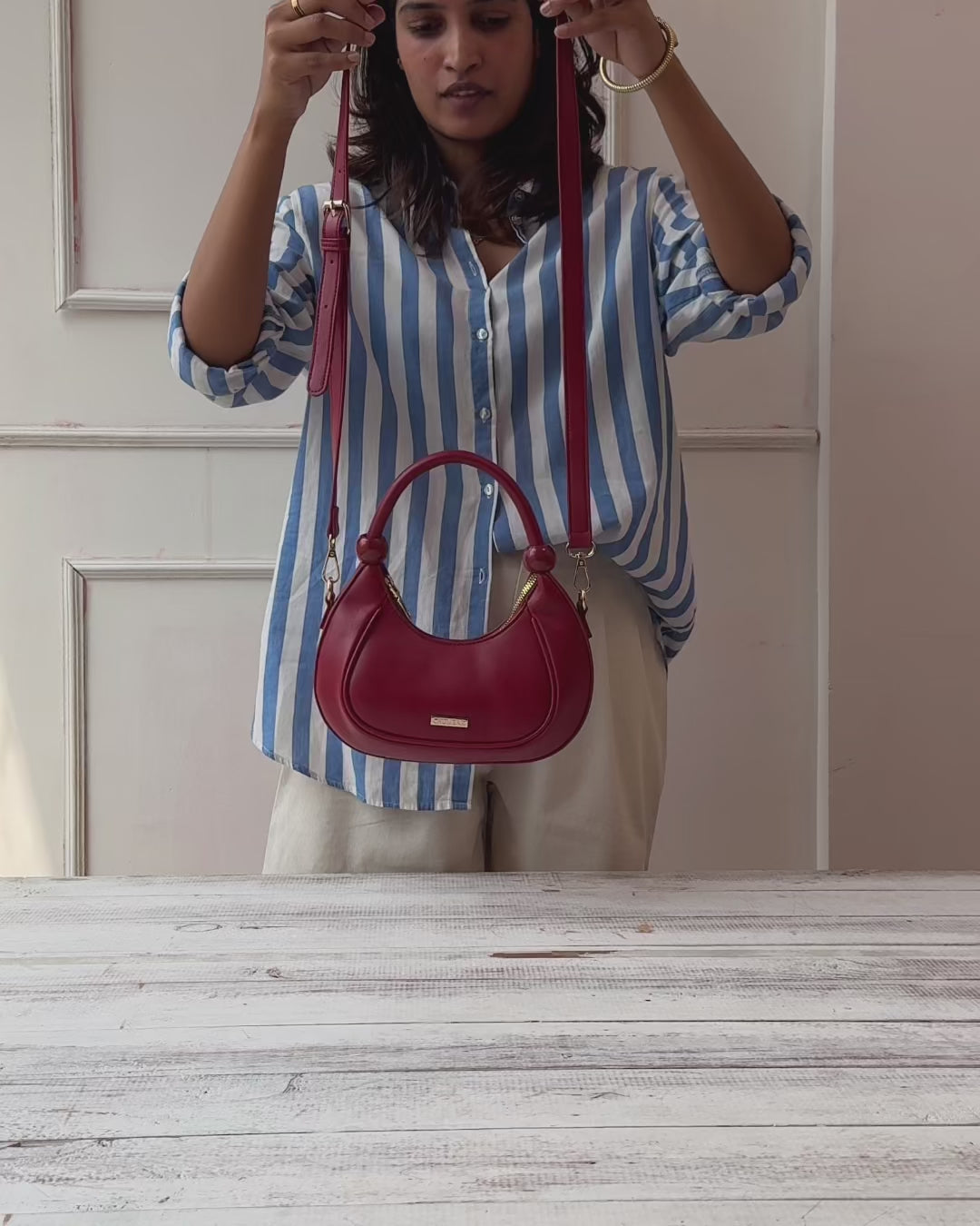 With its half-moon silhouette reminiscent of Venetian bridges and curves, this bag blends romance and artistry in every detail.
